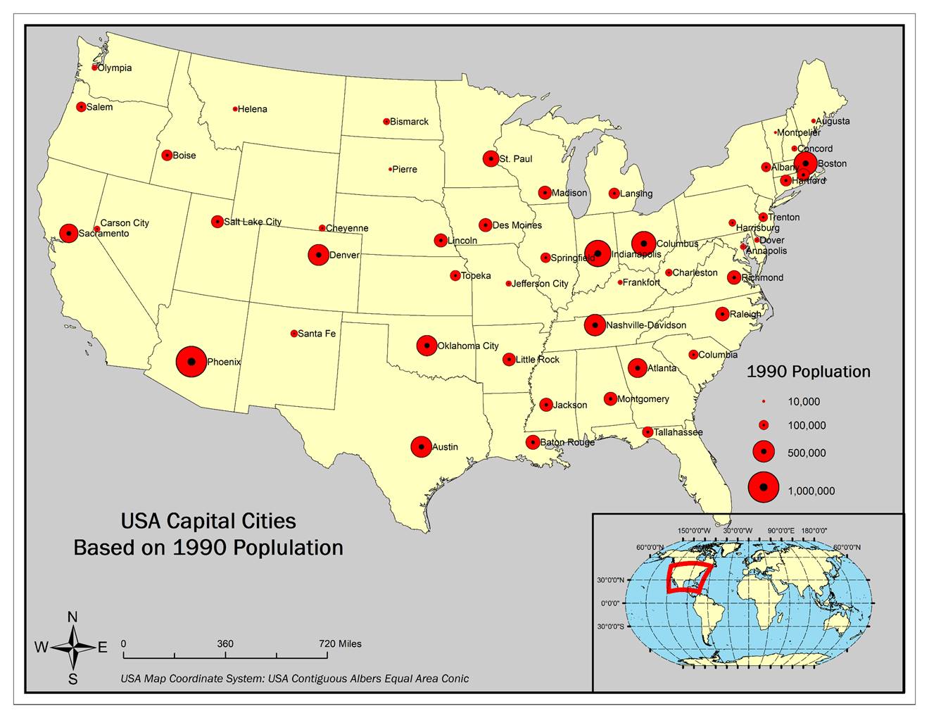 States Capital Cities with 1990 population